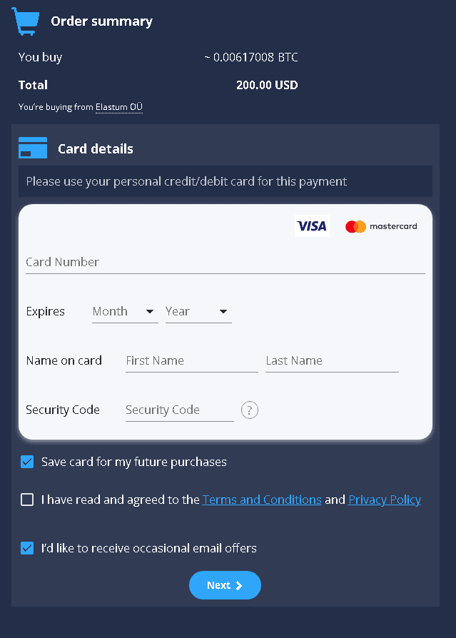 Buy Crypto カードで暗号資産を買う