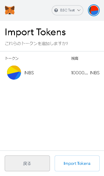 METAMASKでトークンの追加でトークンアドレスを入力すると追加されているのが確認できます。