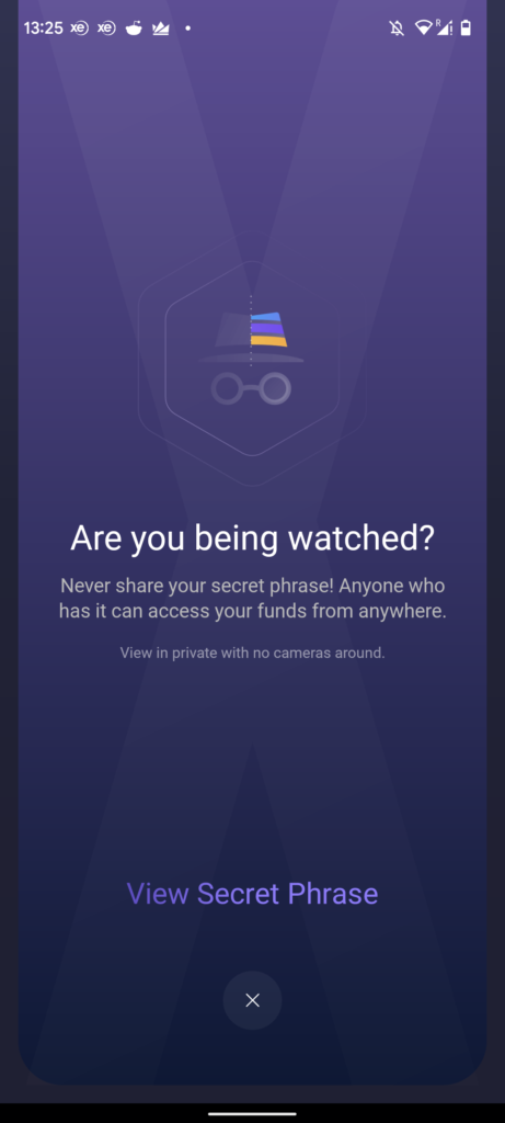 BackupNowを押すとViewSecretPhrase画面がでます。